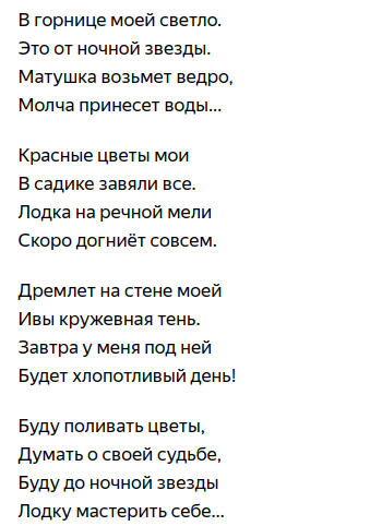 Всего 10 строк. Короткое выразительное стихотворение. И даже не удивительно, что из него получилась целая песня.