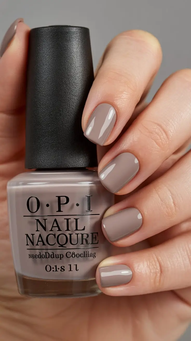 Чтобы добиться такого эффекта, я предпочитаю известные бренды, например OPI. Их формула цвета «тауп» имеет кремовую текстуру без разводов, о которой мы все мечтаем. Её следует сочетать с глянцевым верхним слоем, чтобы оттенок не казался плоским, а имел стеклянный блеск, красиво отражающий свет. Если вы хотите пойти ещё дальше, матовый верхний слой мгновенно превратит образ в нечто редакционное, почти в стиле подиума.