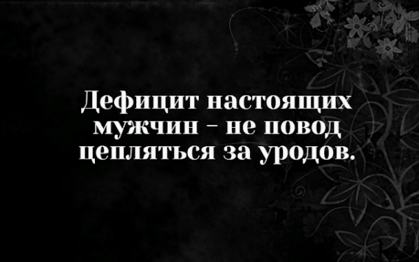 Коко Шанель говорила: открой шкаф и достань свои платья. Посмотри на них критически: можно ли в них пойти в гости? Если нет, то это тряпки. Почему они до сих пор болтаются в твоем шкафу? Тоже самое и с мужчинами. Рядом с ним ты должна чувствовать себя уверенно, находиться под защитой его силы, желанной и прекрасной. Не чувствуешь? Тогда что он делает рядом с тобой?