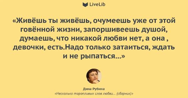 Затаились. Ждем. Не рыпаемся. А Любовь уже шагает к нам. Дина Рубина не может ошибаться.