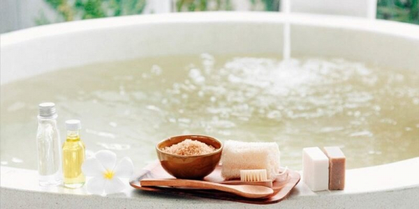 Хороший вариант — растирание тела содово-солевым скрабом перед погружением в воду.