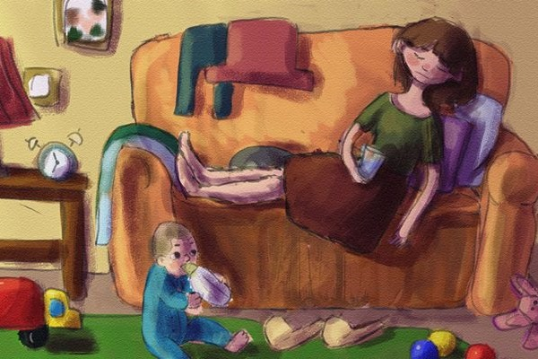 Муж пришел домой с работы и обнаружил, что трое детей во дворе дома — и до сих пор в пижамах! Они играли в грязи с пустыми коробками от еды и везде валялся мусор. Дверь автомобиля жены была открыта, как и входные двери дома. Собаки нигде не было. В прихожей было еще больше хаоса. Лампа выключена и у одной из стен лежали скомканные одеяла.